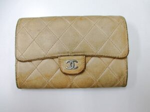 【CHANEL】財布 汚れが目立つ色からネイビーにカラーチェンジ。より重光に、艶もまして高級感が出ました。 クリーニング 9,350円 全体カラーリング 9,350円 計 1,8700円
