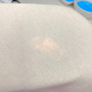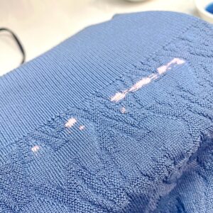 セーター 部分色掛け 塩素系漂白剤による色抜けが部分色掛けによりここまで目立たなくなりました。 クリーニング 部分色掛け - 円
