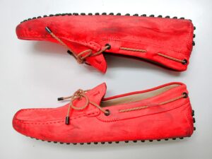 モカシンシューズ 赤 スレや汚れがここまで綺麗に仕上がりました。 クリーニング 計 4,400円